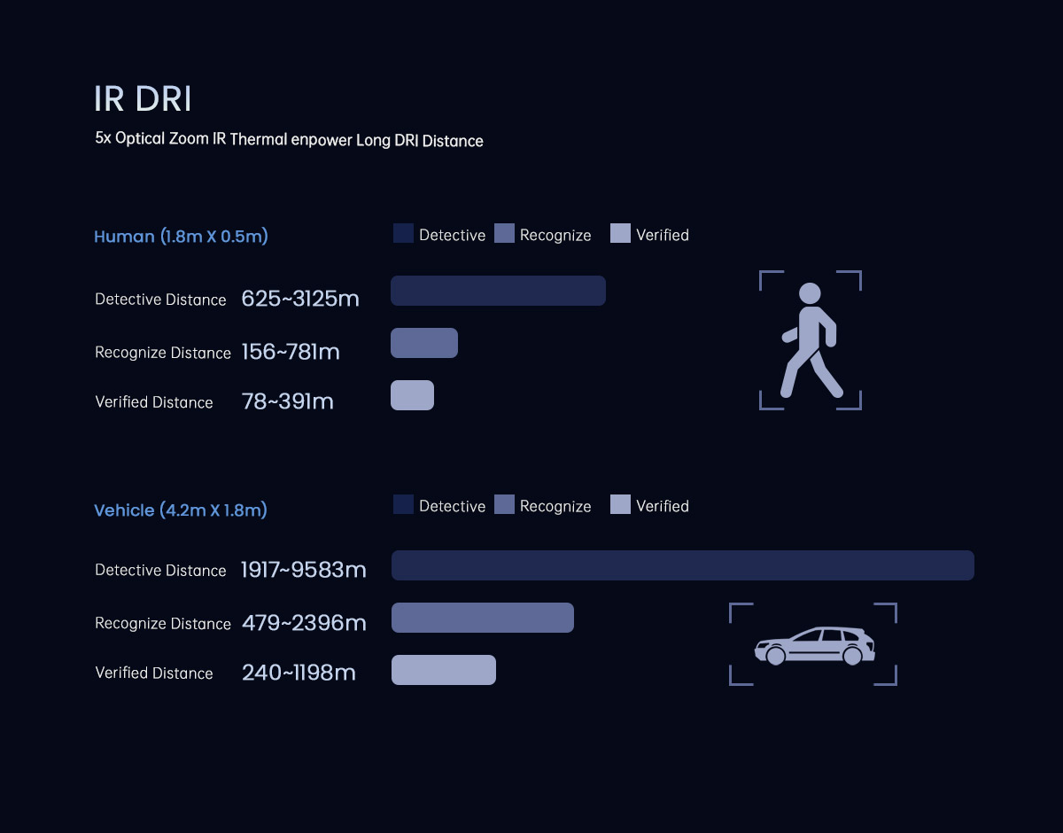 | 15~75mm Detective Distance (Car: 4.2x1.8m) | 1917~9583 meters |