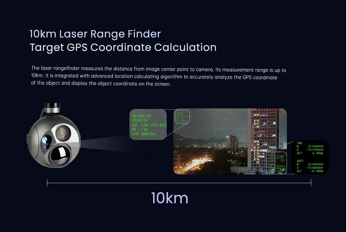 | Rangefinder | Measure the distance between the object at the center of screen and the laser rangefinder |