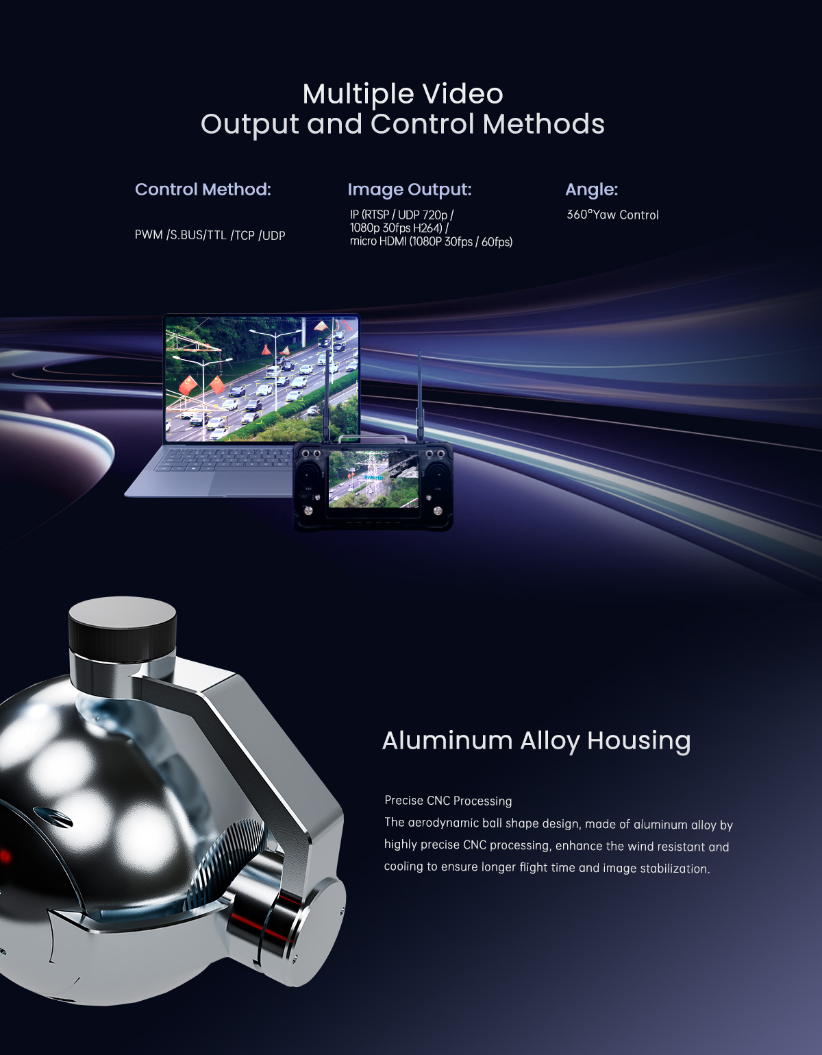 | Accessories | 1pc gimbal camera device, screws, aluminum cylinders, damping balls, damping boards, 1pc USB to TTL cable / Hight quality plastic box with foam cushion |
