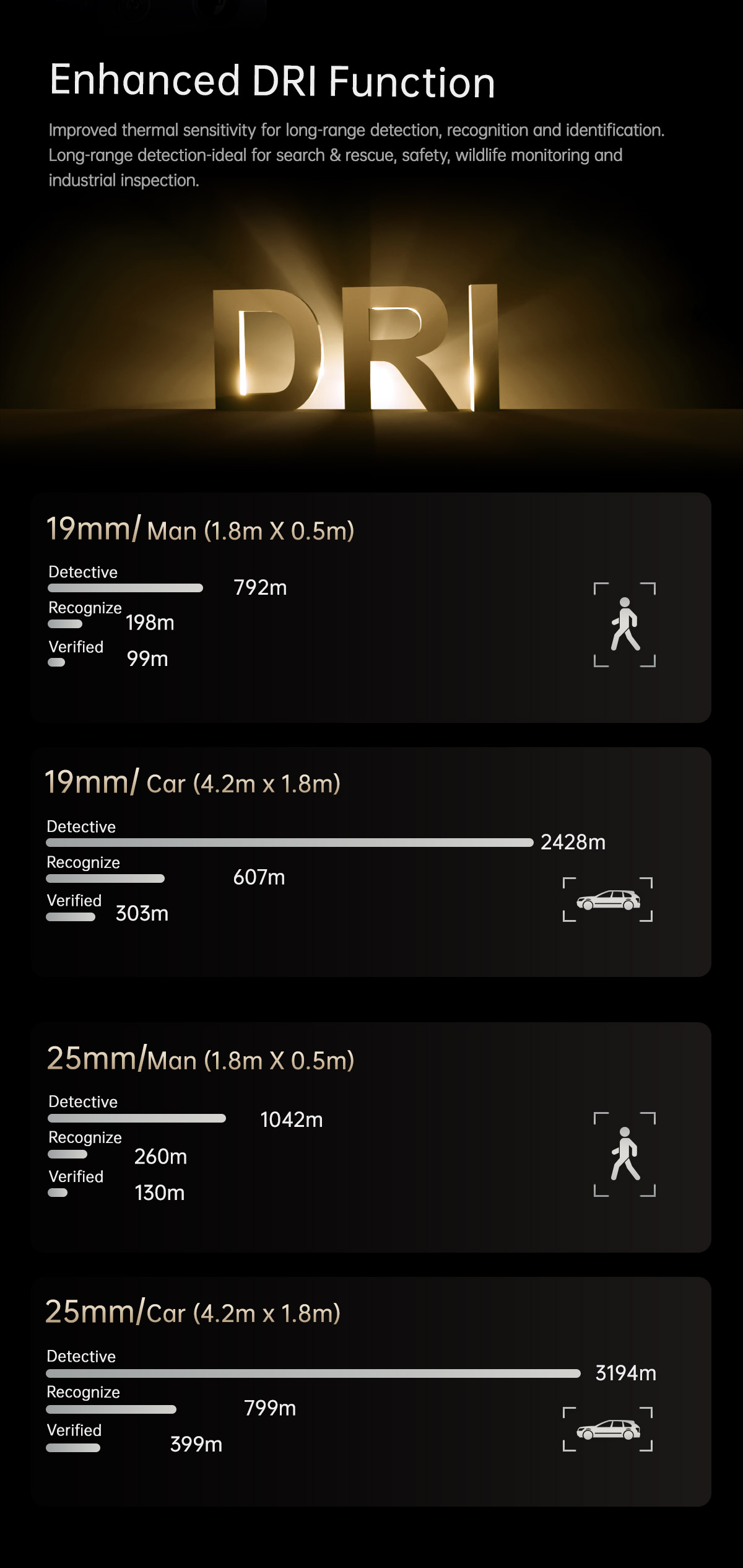 | Identification Distance (Man: 1.8x0.5m) | 130 meters |