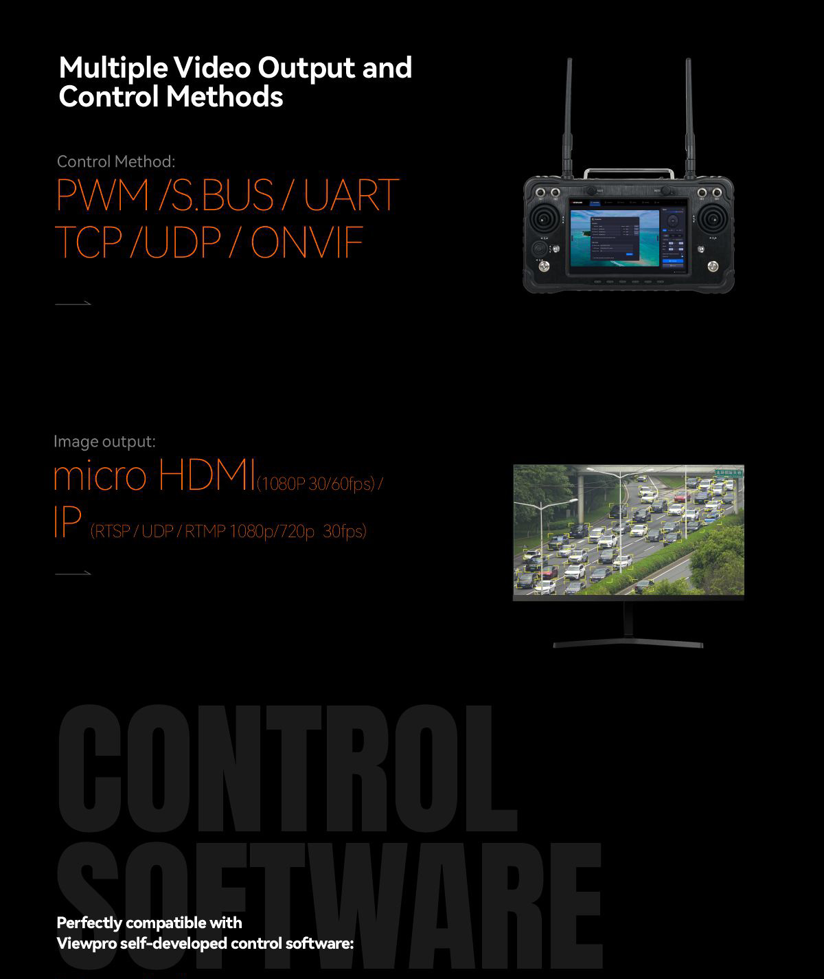 | Control method | PWM / TTL / S.BUS / TCP / UDP | |