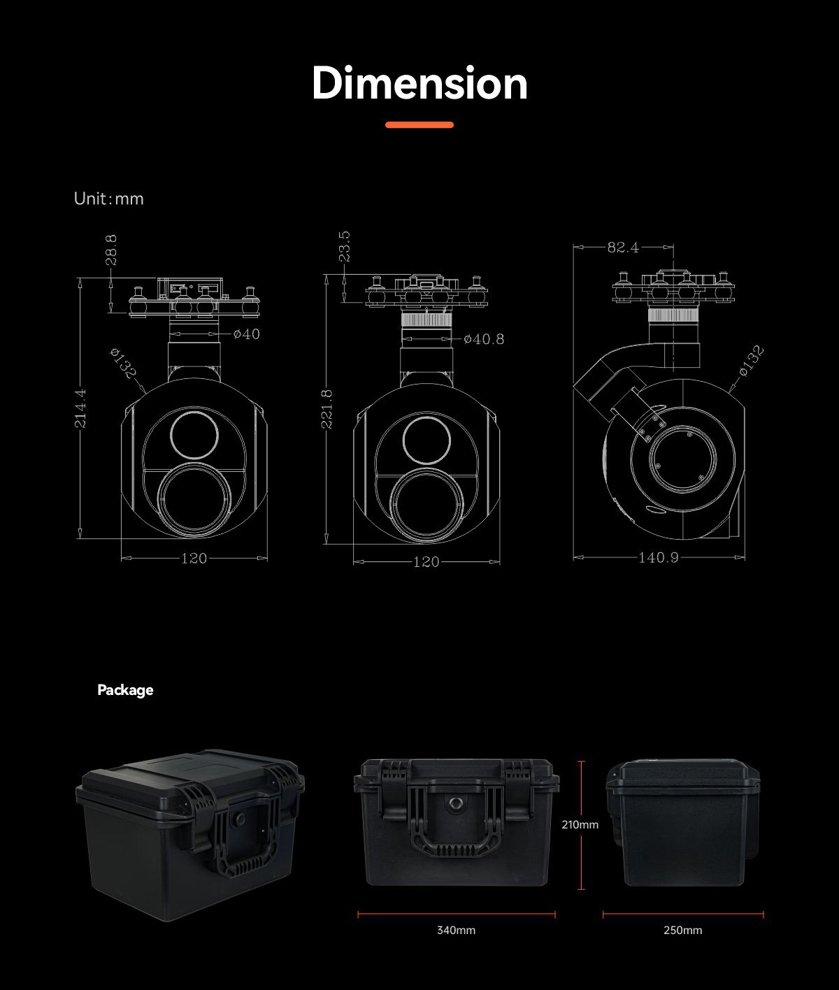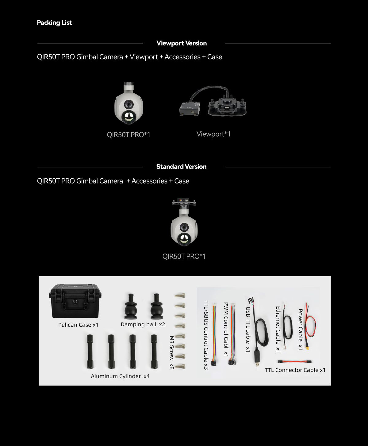 | Accessories | 1pc gimbal camera device, screws, copper cylinders, damping balls,1pc USB to TTL cable / Hight quality plastic box with foam cushion |
