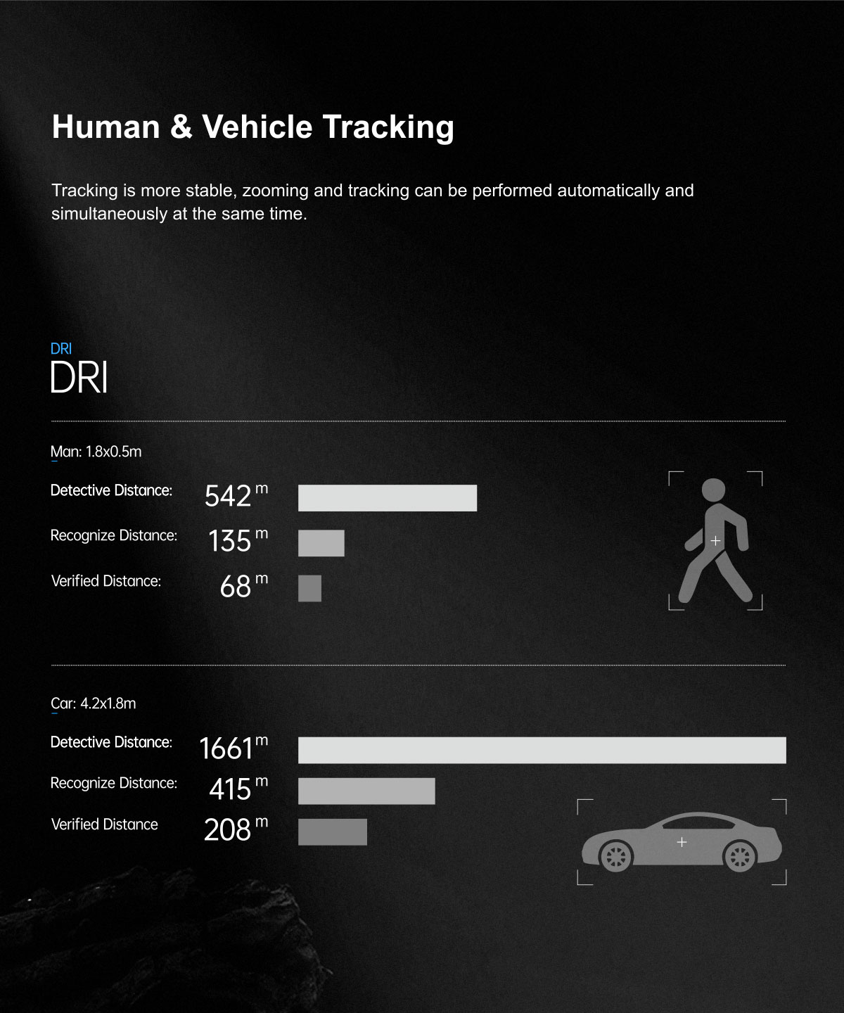 | Recognize Distance (Man: 1.8x0.5m) | 135 meters |