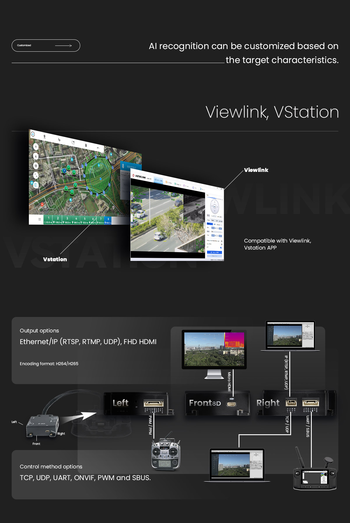 Control method | PWM / TTL / S.BUS / TCP(IP output)/UDP(IP output version) |