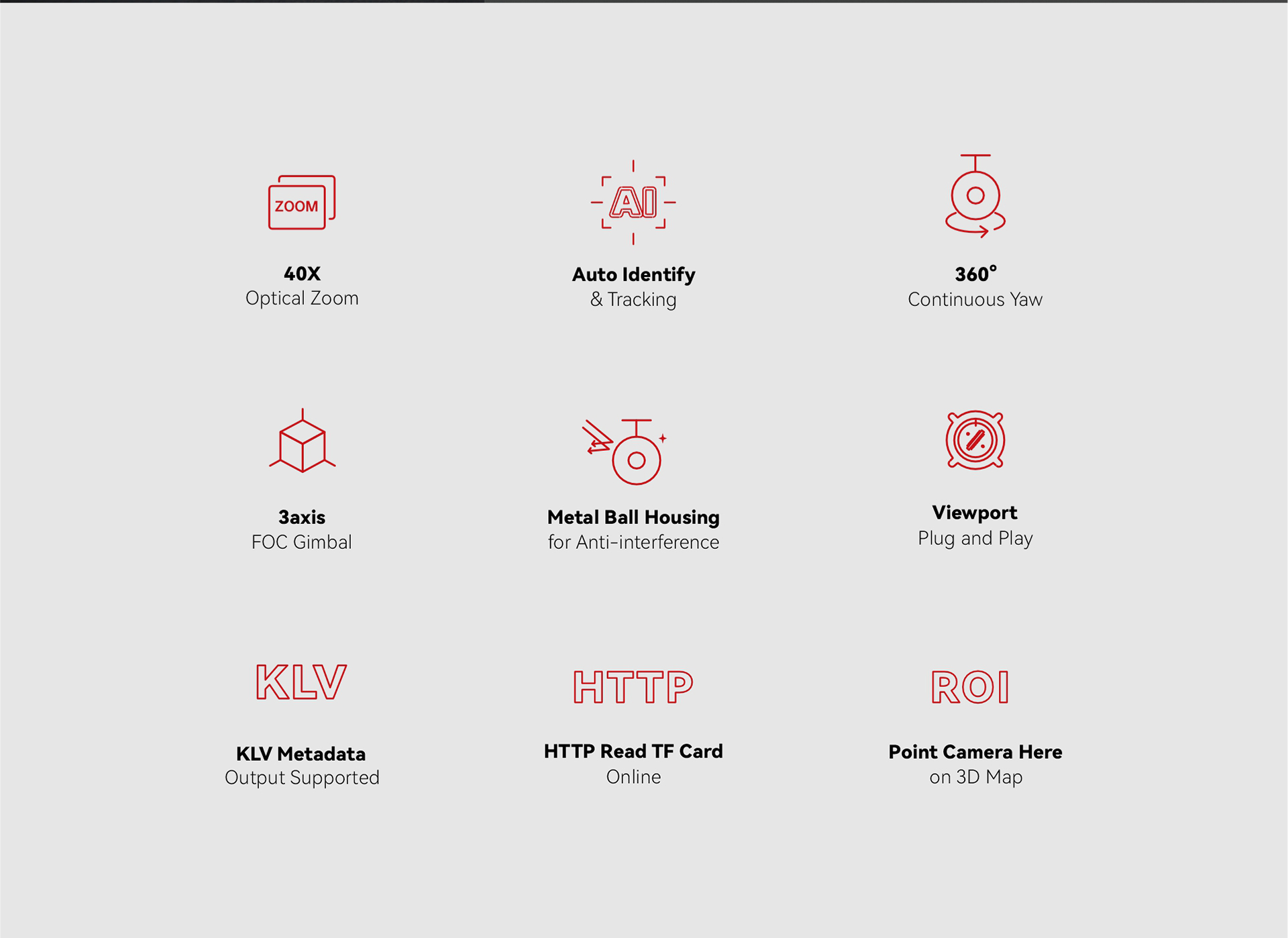 | Angle range of structure design | Pitch/Tilt:-60°~130°, Roll: ±40°, Yaw/Pan: ±300° / ±360°*N (IP output version) |