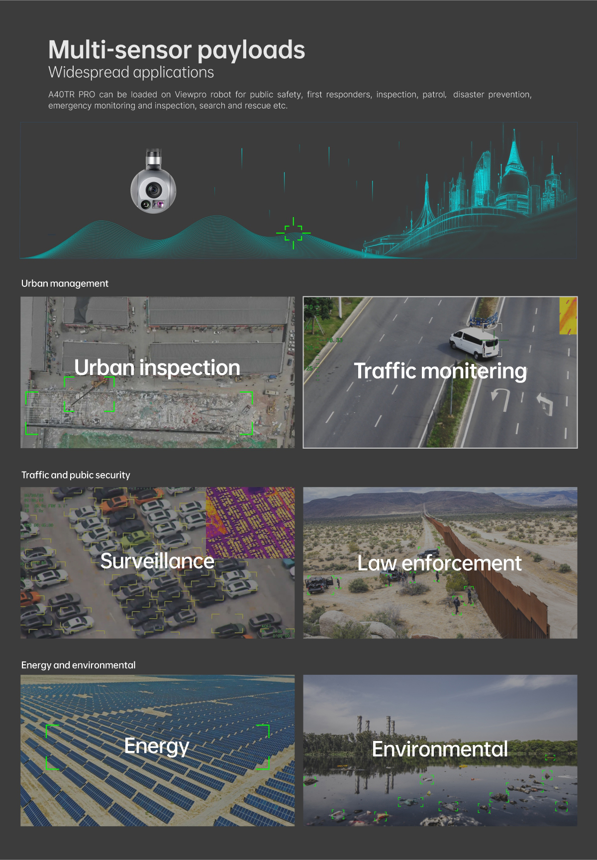 | Mechanical Range | Pitch/Tilt: -60°~130°, Roll: ±40°, Yaw/Pan: ±300° / ±360°*N (IP output version) |