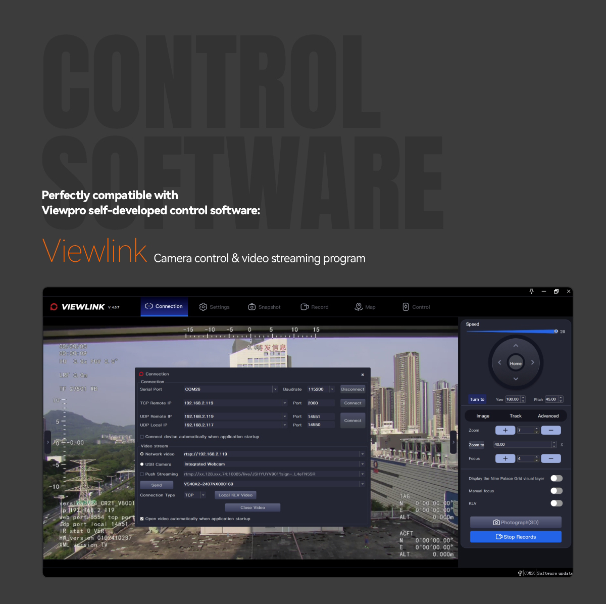 | Angle scope of software design | Pitch/Tilt: -45°~115°, Yaw/Pan: ±140° |