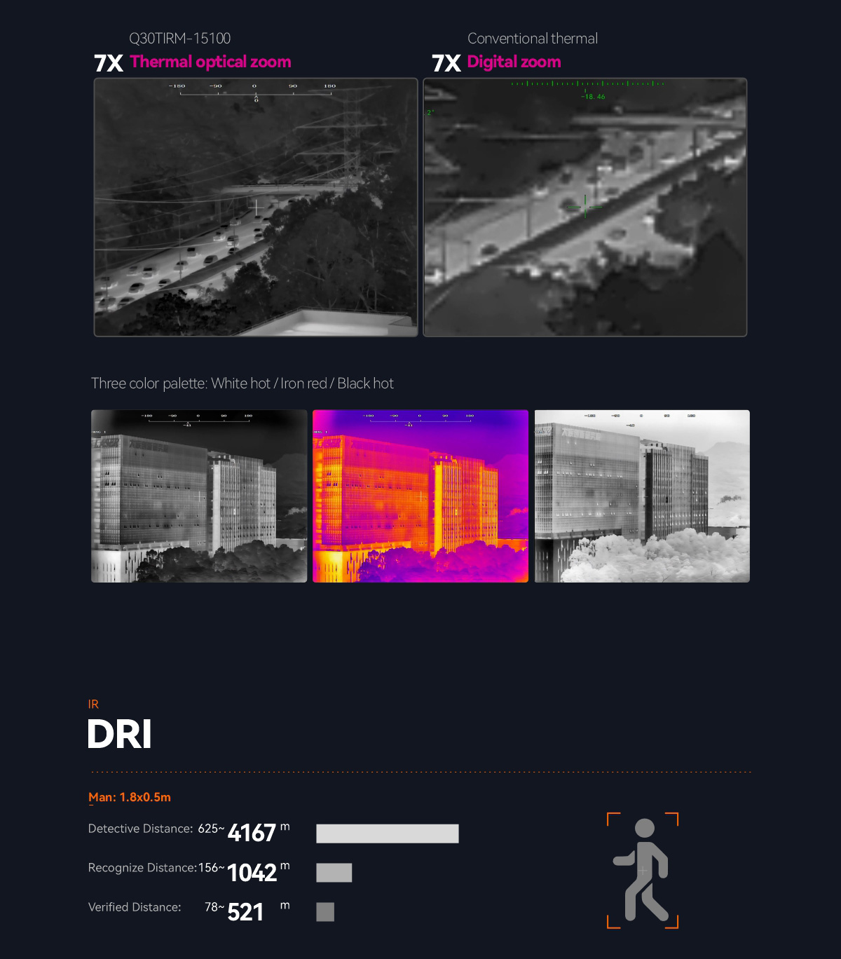| 15~100mm Detective Distance (Man: 1.8x0.5m) | 625~4167 meters |
