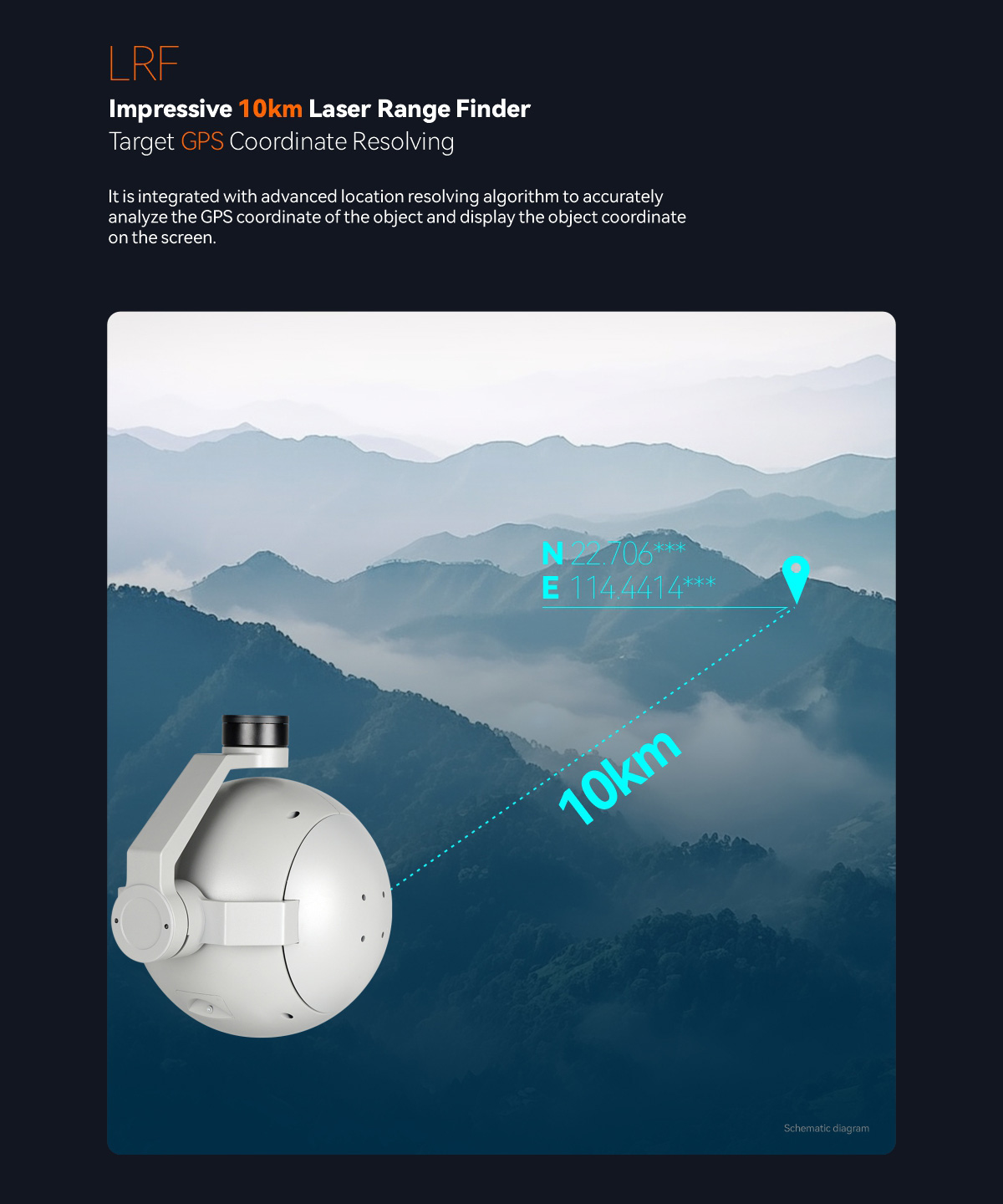 | Range | 10km for big target (eg. building) ≥6km for car (2.3m×2.3m) ≥2.5km for people (1.75m×0.75m) (Based on typical value: LOS visibiligy: ≥10km Diffuse reflection rate: ≥0.3 Humility: ≤80%) |