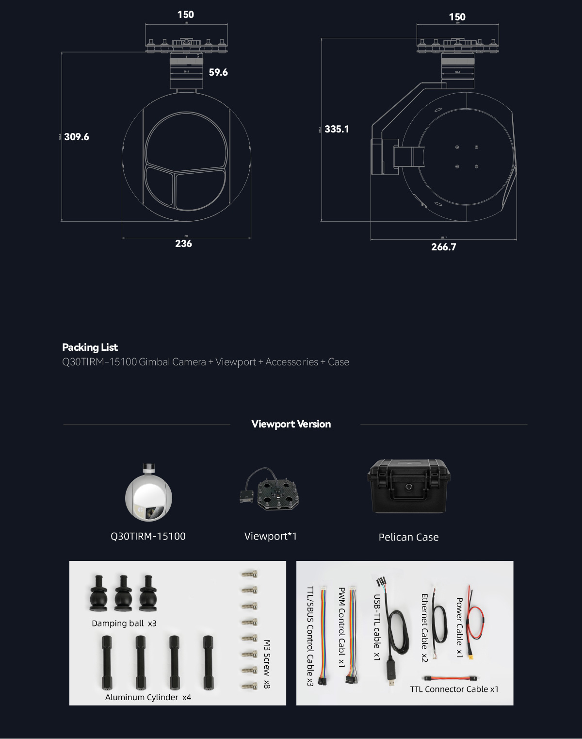 | Accessories | 1pc gimbal camera device, screws, copper cylinders, damping balls, damping boards, 1pc USB to TTL cable / Hight quality plastic box with foam cushion |