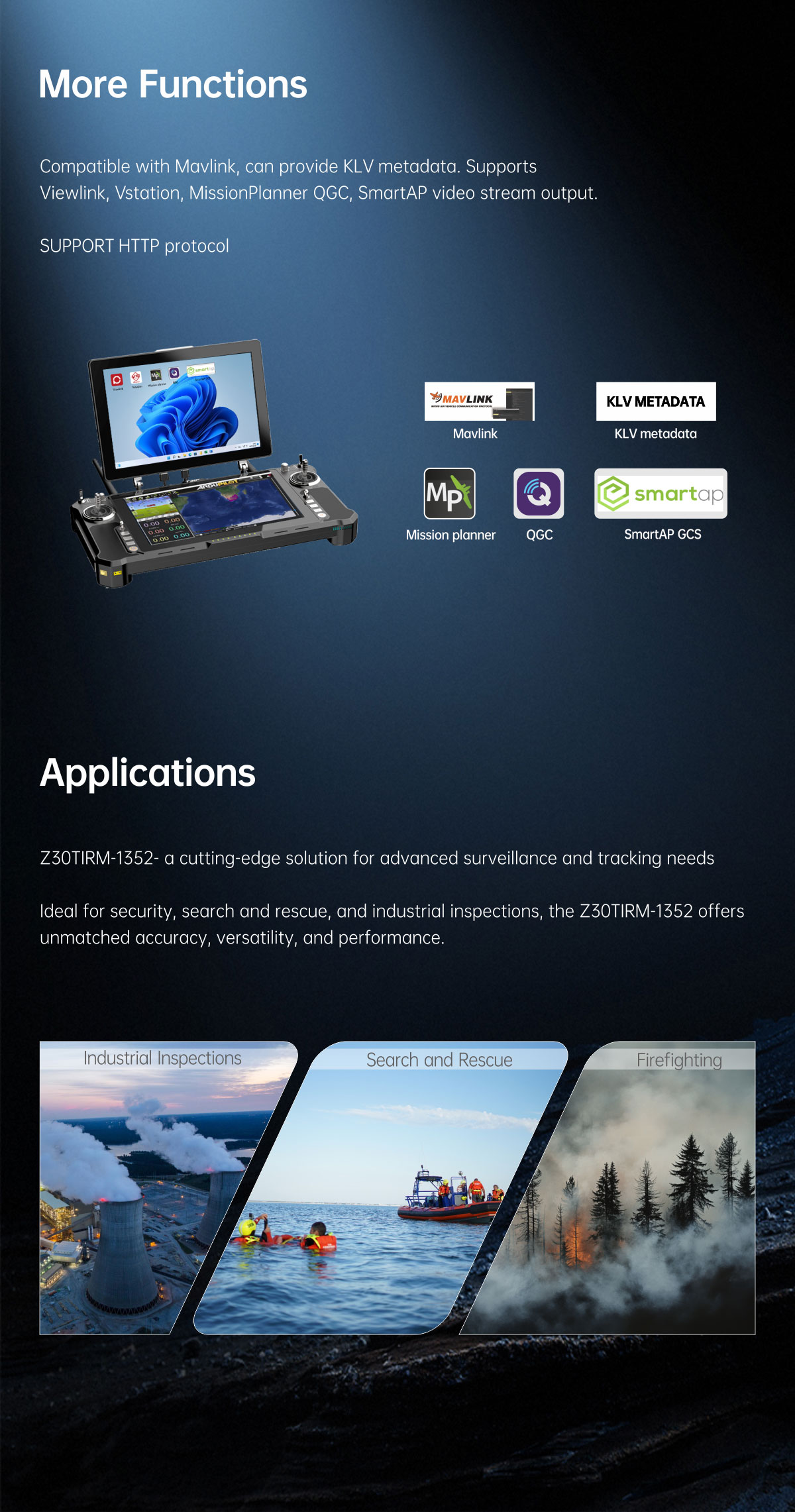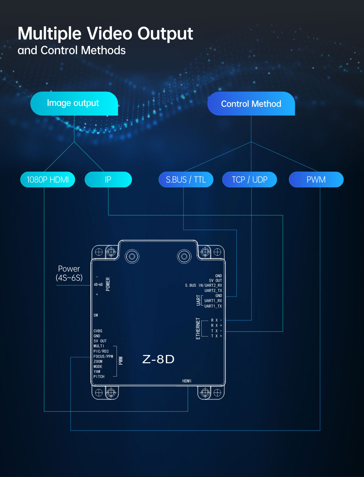 | Control mode | PWM / S.BUS / TTL / TCP / UDP |
