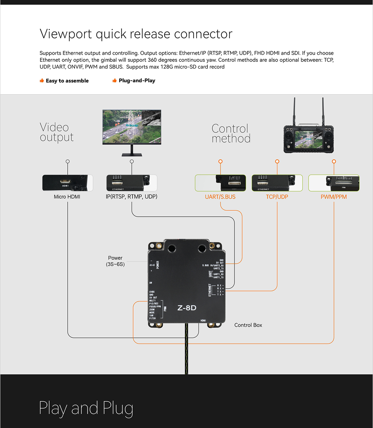 | Control method | PWM / TTL / S.BUS / TCP(IP output) / UDP(IP output) |