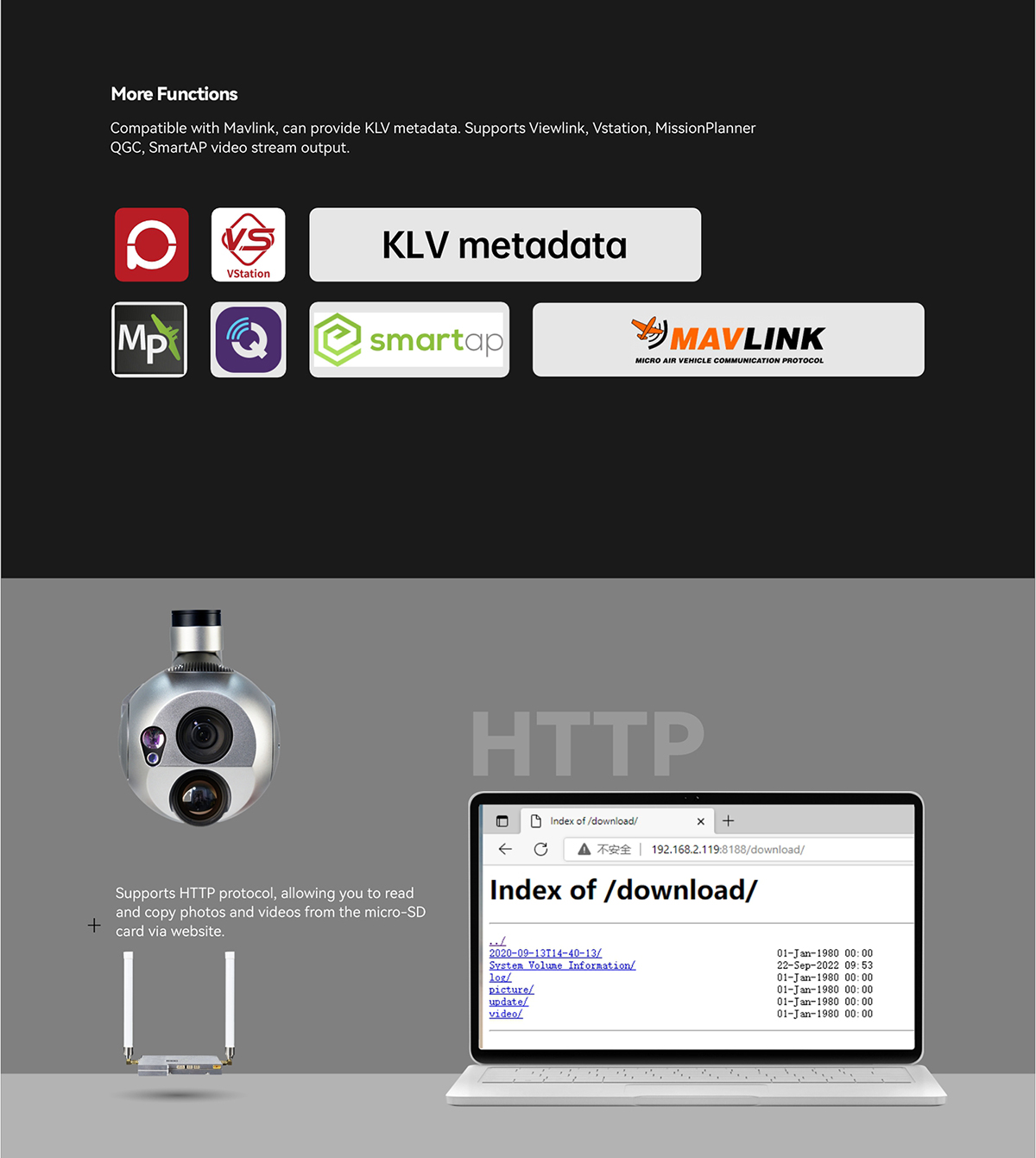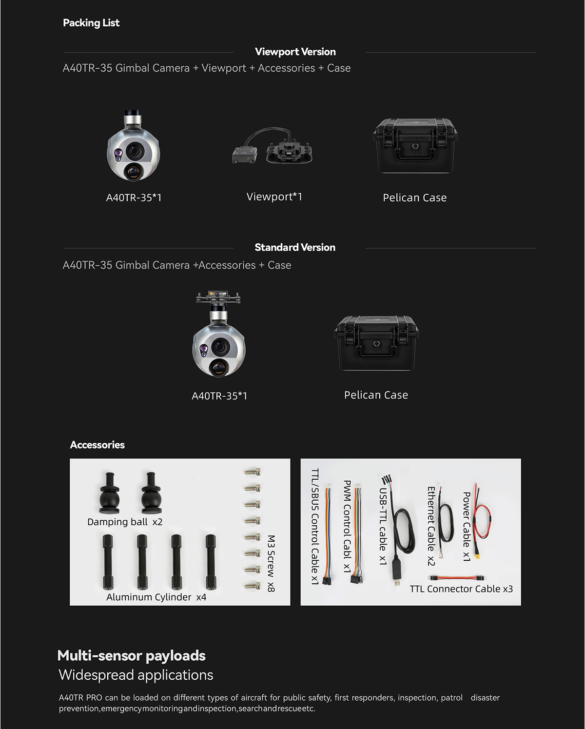 | Accessories | 1pc gimbal camera device, screws, copper cylinders, damping balls, damping boards, 1pc USB to TTL cable / Hight quality plastic box with foam cushion |