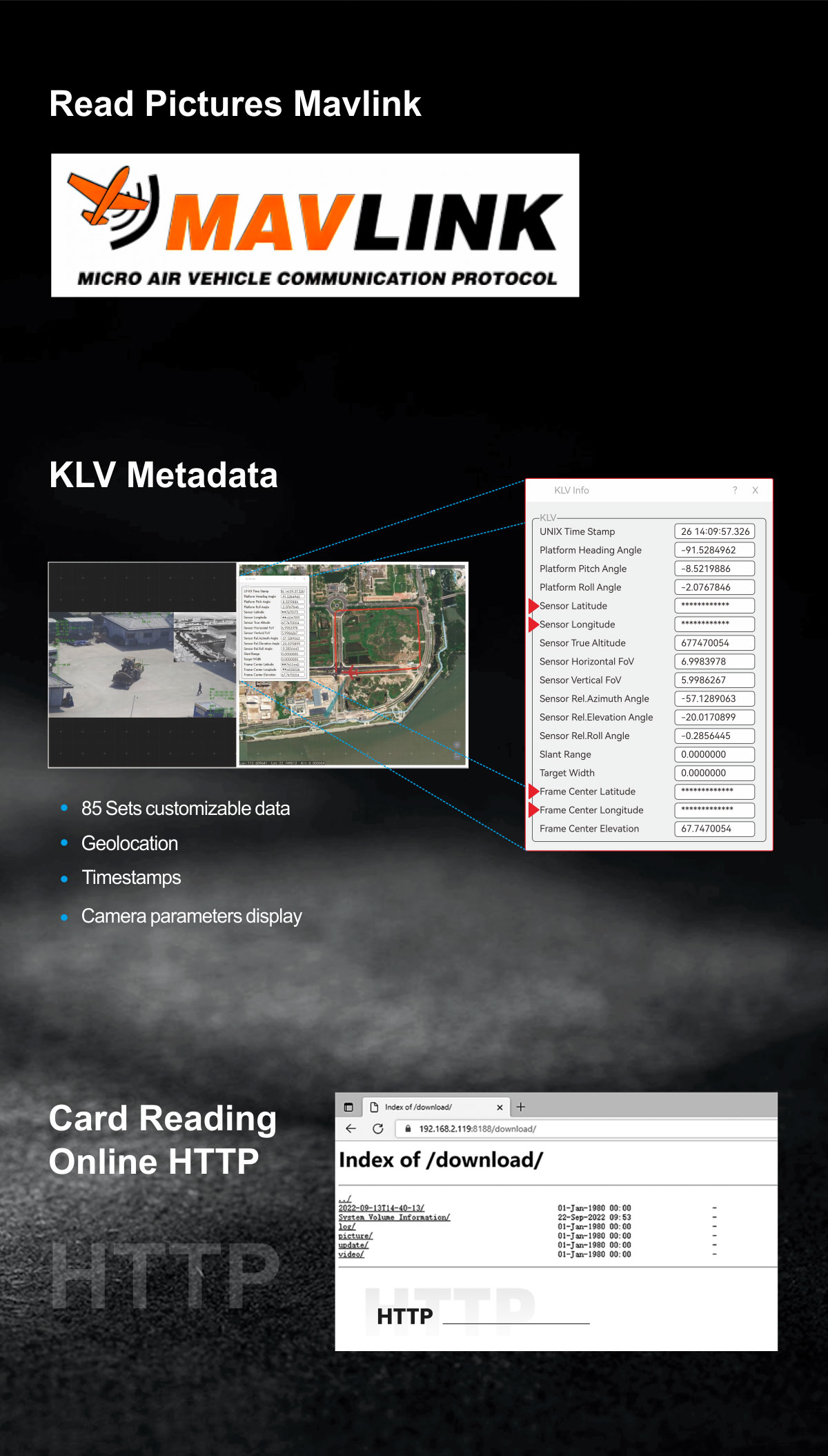 | KLV (UDP) | Card recording or Viewlink video playback |